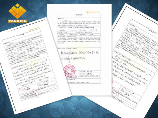 隨著地坪種類的不斷豐富,應(yīng)用領(lǐng)域的不斷擴(kuò)大,地坪工程質(zhì)量已經(jīng)成為地坪行業(yè)持續(xù)發(fā)展的關(guān)鍵。一個優(yōu)質(zhì)的地坪工程產(chǎn)品,不再僅僅是面層材料選用和施工,更重要的是地面整體系統(tǒng),即面層+基層的整體方案設(shè)計與施工。武漢永信地坪用多年的經(jīng)驗和口碑得到了客戶的認(rèn)可、得到了中國建筑材料聯(lián)合會地坪分會的官方認(rèn)證。武漢永信將繼續(xù)致力于引進(jìn)更加綠色、節(jié)能環(huán)保的新型建材,用我們自己的 產(chǎn)品為我們代言!