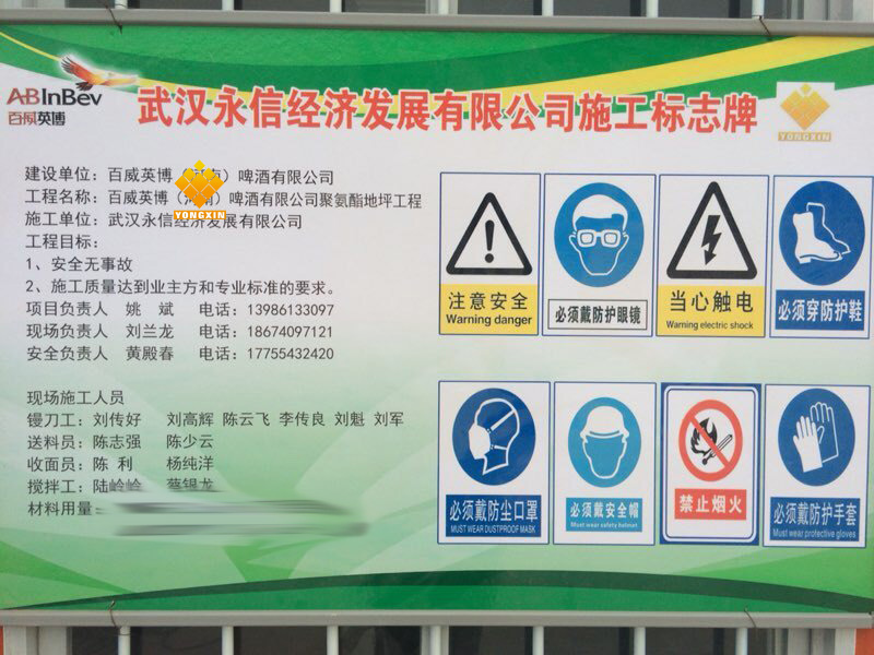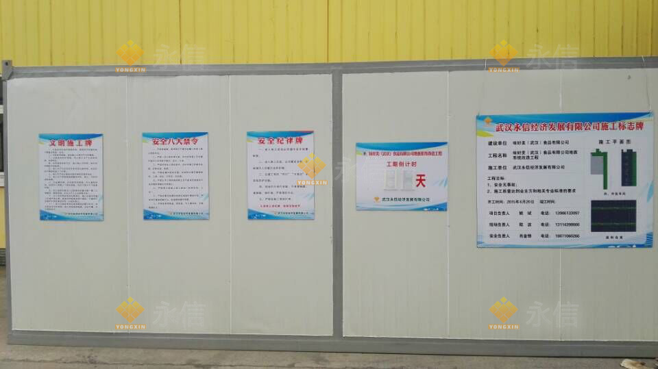施工現(xiàn)場的入口處應(yīng)當(dāng)設(shè)置“一圖五牌”,即:工程總平面布 置圖和工程概況牌、管理人員及監(jiān)督電話牌、安全生產(chǎn)規(guī)定牌、消防保衛(wèi)牌、文明施工管理制度牌,以接受群眾監(jiān)督。在場區(qū)有高處墜落、觸電、物體打擊等危險部分應(yīng)懸掛安全標(biāo)志牌。